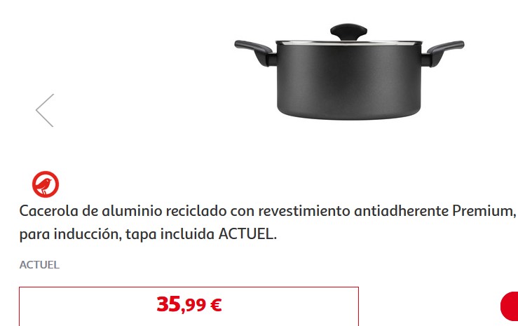 Esta cacerola es otro de los productos que ofrece Alcampo para el hogar, que esta oferta. Son fabricadas en cuerpo de aluminio 100% reciclados, además son de gran resistencia y ligereza. Inclusive, cuenta con un revestimiento premium antiadherente que nos permite cocinar con menos aceite sin miedo a que nuestros alimentos se adhieran a la sartén. Cuenta con una tapa incluida actuel, además es de 24 cm y son aptas para inducción. Entonces, adquiérela por Alcampo a un precio accesible de 35,99 €.