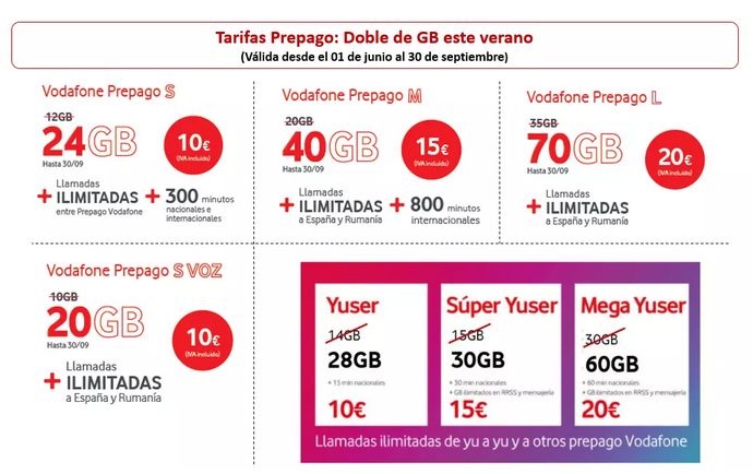 Con cada una de estas recargas, la operadora duplicará gratis los gigas para navegar con respecto a los incluidos en la tarifa. Una gran idea, aunque lo mejor es que te leas todas las condiciones que ha impuesto Vodafone para esta campaña. Básicamente, se resume que con cada recarga que realicen tendrán el doble de gigas en su tarifa.