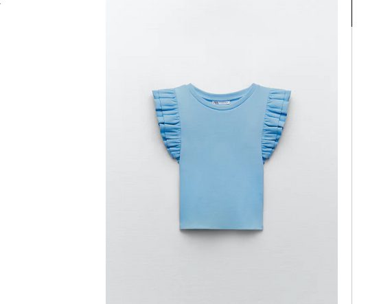 Lo básico no quiere decir que no tenga detalles, y como ocurre en el caso de estas camisetas de Zara, te las recomendamos porque vienen con el detalle de los volantes. Puedes comprobar que se trata de una camiseta corta de cuello redondo y manga sisa acabada en volantes.
