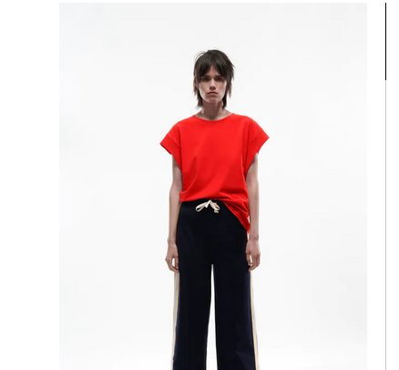 Puedes elegir entre rojo, blanco, rosa y negro y además entre las tallas de la S a la XL. Así que no vas a tener problemas para sumar este básico a tu armario. Y el precio tampoco será impedimento porque cuesta 7,95 euros. La compra la puedes hacer on line, ya que muchas tiendas de la firma de Inditex están cerrado en los últimos meses.