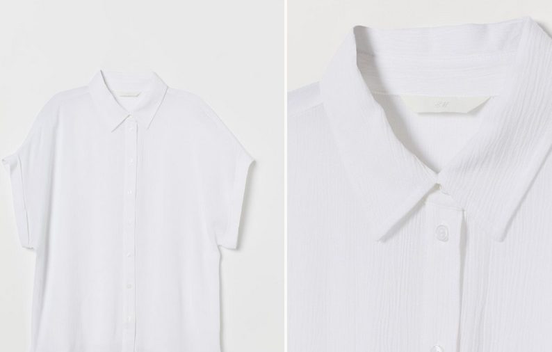 Por ejemplo luce un modelo con cuello y botones delante, mangas cortas amplias con dobladillo cosido y aberturas laterales cortas. Vale 14,99 euros, lo que supone un alivio para los bolsillos. Eso sí, solo la puedes encontrar en color blanco.