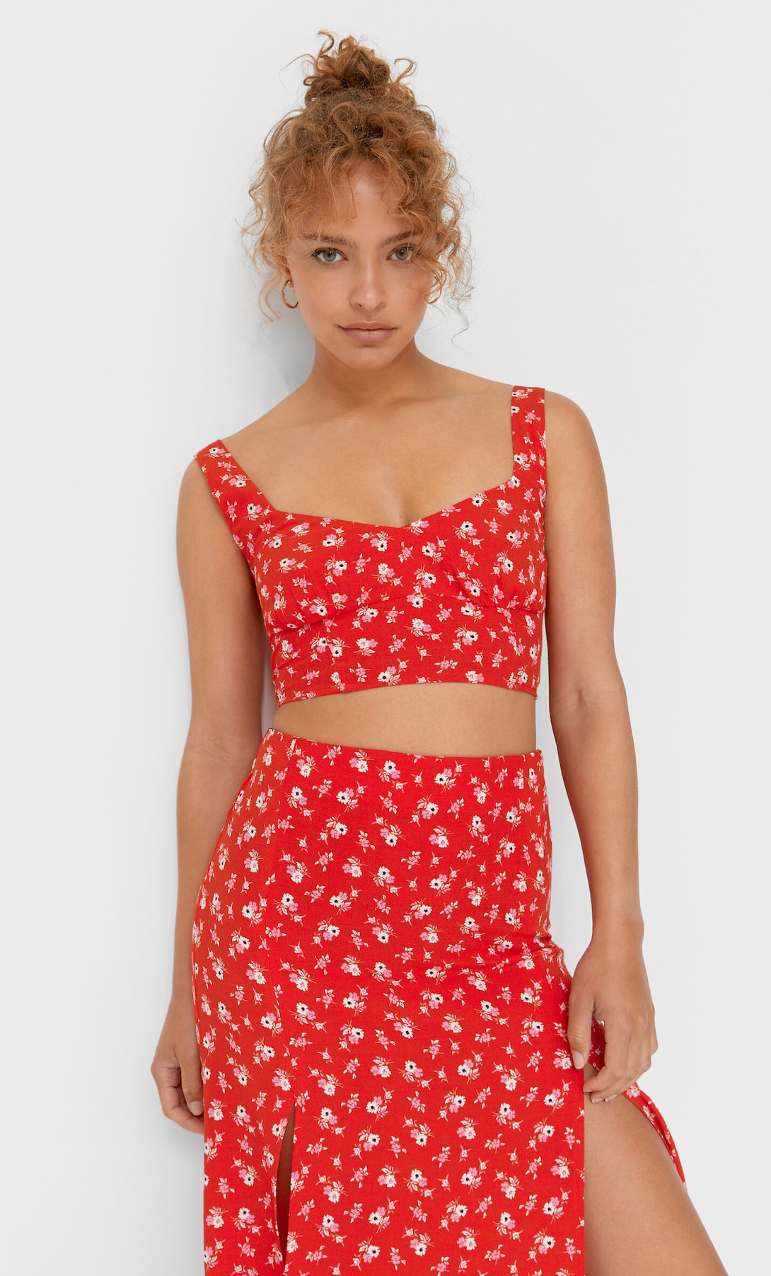 Por eso, nos ha llamado tanto la atención este tip de tirantes y flores de Stradivarius, que ya podemos encontrar en la sección de novedades de la tienda. Con base roja y estampado en blanco, crea uno de los mejores contrastes.