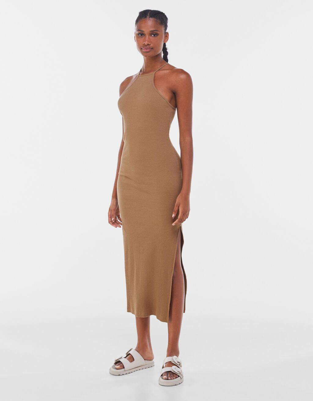 Comenzamos con un vestido largo que puede ser ideal para estas noches de verano en las que no sabes qué ponerte porque por la noche se levanta el aire fresco. Pues aquí tienes uno de los vestidos de Bershka que más se ha vestido.