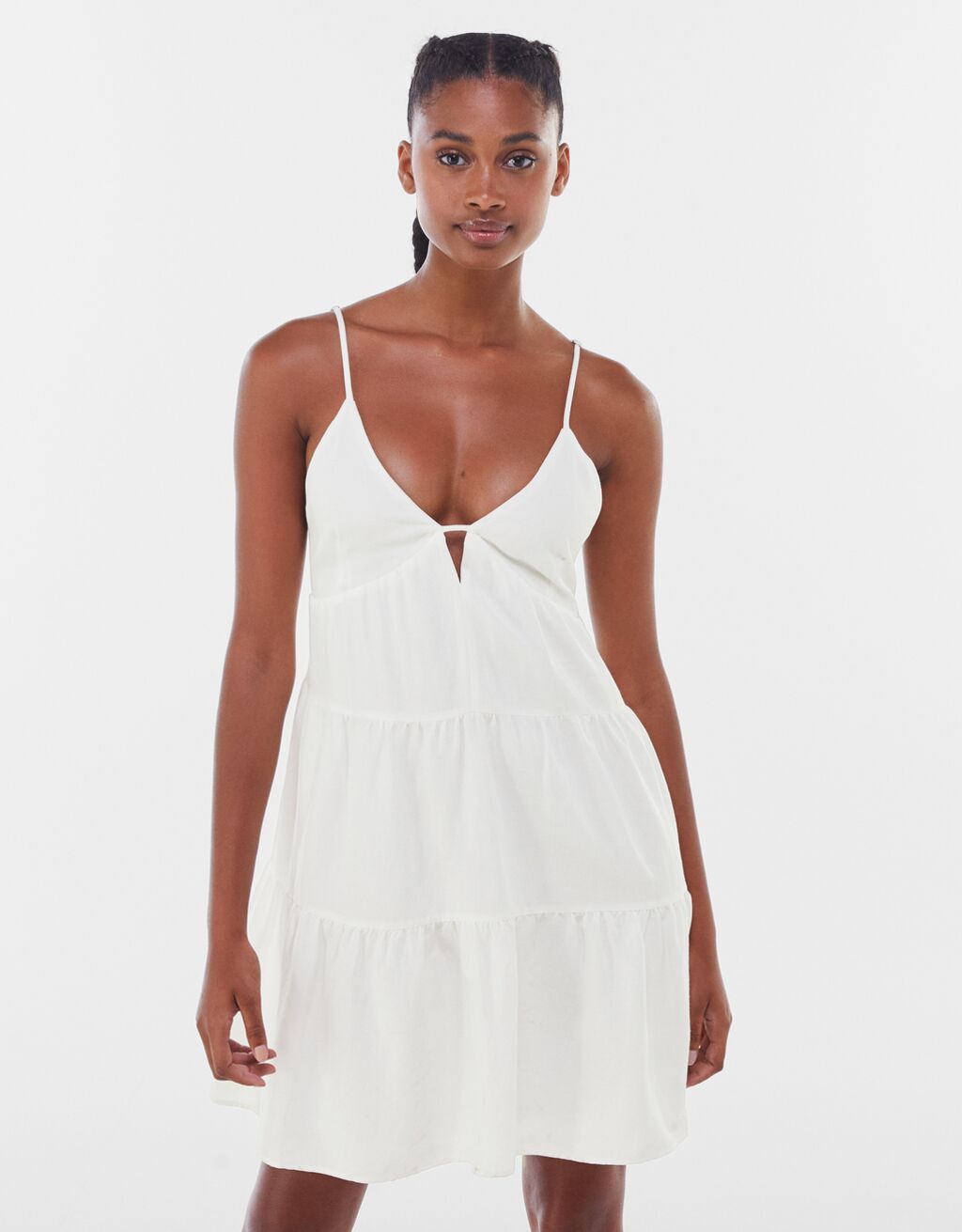 Si te ha gustado el anterior modelo, pero solo le pones una pega, en forma de cruzado, aquí tienes la solución. Te presentamos uno de los vestidos más vendidos en las tiendas de Bershka: un modelo con lino volantes por 25,99 euros, el mismo precio.