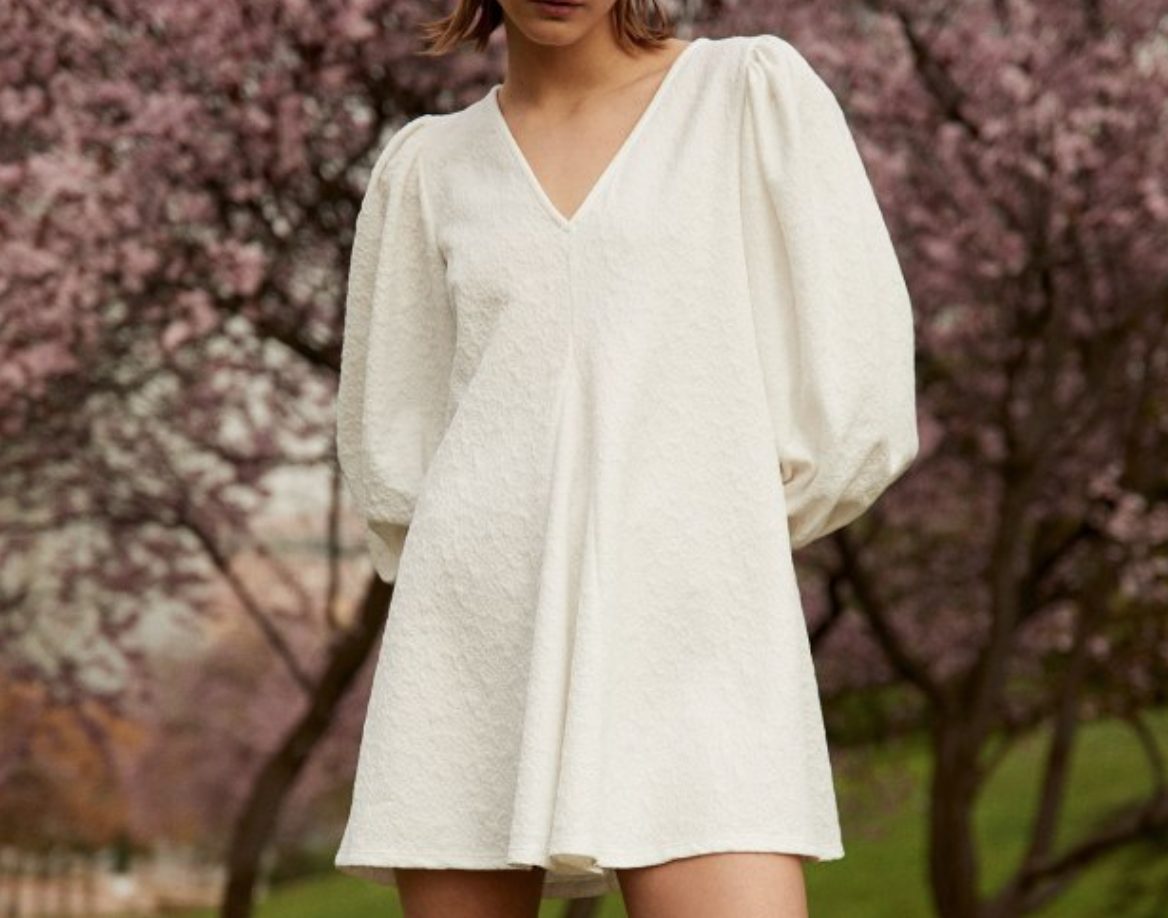 Su color crema lo convierte en uno de los más deseados y adquiridos por las chicas más elegantes. Un básico de armario que tiene un sutil y elegante dibujo sobre la tela formando una estructura que da nombre al vestido. Es muy cómodo por su forma con escote de pico y manga amplia. En la espalda se encuentra la parte más especial, ya que es un poco abierta con forma de V y unas tiras que se anudan en forma de lazo. Su precio es de 29,99 € y ha sido producido en las tallas S, M y L, pero la S ha agotado rápidamente en la tienda online.