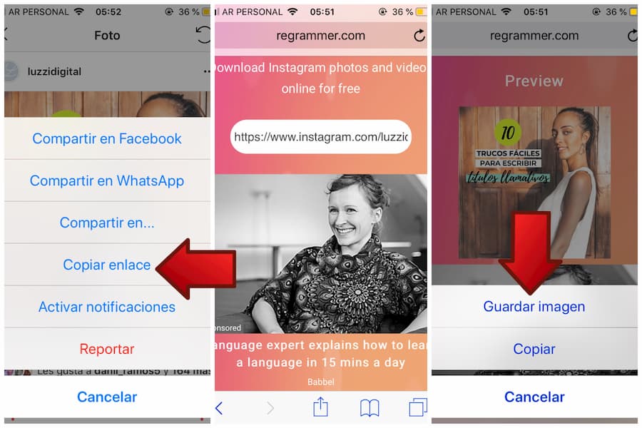 Es tan fácil como ir a la foto o al vídeo, luego tocar el icono de los tres puntos y selecciona la opción Copiar enlace. A continuación, pega la URL en el campo de texto y pulsa en el botón Ver. Mira abajo, porque aparecerá una vista previa del contenido, y podrás bajártelo haciendo clic en el botón de descarga. Es fácil, ¿verdad?