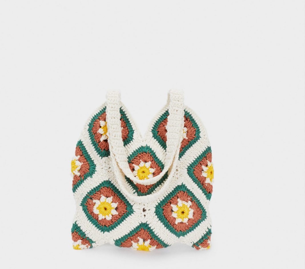 Este es uno de los bolsos de Parfois que más nos gustan de esta colección de verano. Y es que es muy mono e ideal para combinar con nuestras noches veraniegas en la playa. Se trata de un Bolso De Mano Trenzado con los típicos motivos veraniegos. En este caso con rombos con flores insertadas de color blanco y amarillo.