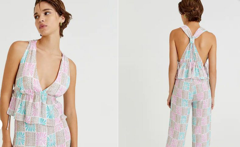En nuestro armario de verano no puede faltar tampoco un top de tirantes. La prenda ideal para acudir a una fiesta o sarao de esos que surgen en tiempo de vacaciones. Nuestra recomendación es este top de tirantes con escote de pico amplio, nudo en la espalda y volante. Eso sí, una oferta que es exclusiva online por lo que tendrás que hacerla desde la página web.