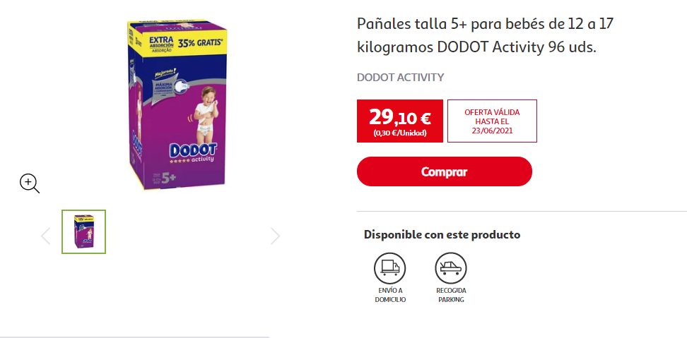 El mejor pañal de Dodot es ahora más suave que nunca. Su capa Cora-soft es tan suave como una pluma. Envuelve a tu bebé en una increíble sensación de suavidad y ofrécele la máxima comodidad y protección de Dodot. Podrás obtener este paquete de pañal de 96 unidades en cualquier sucursal física o en la tienda virtual de Alcampo por tan solo 29.10 euros.