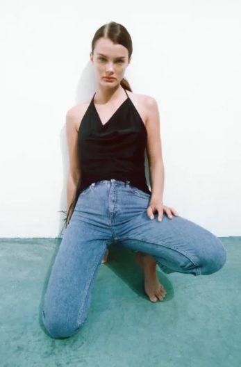 Nunca faltaran los Jeans en las promociones de las tiendas Zara y en esta ocasión, les trae un Jeans de tiro alto, provisto de 5 bolsillos, con efecto pre lavado. Lo traen en finos y excelentes colores: Azul medio, negro, azul claro y gris. Para destacar su estilo, tiene cierre frontal con cremallera y cierra con botón, elaborado con 99 por ciento de algodón y 1% de elastano. Al verlo dudaras si es clásico, moderno, casual. Pero te convencerás que es de una comodidad única. Las tiendas Zara los trae para ti en todas las tallas desde la 32 hasta la 44 a un excelente precio de 25.99 euros.