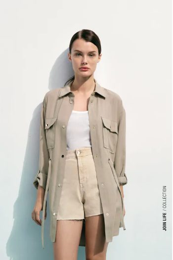 No puede faltar en tu closet, esta Chaqueta Fluida que las tiendas Zara trae para la mujer de hoy, cómoda, jovial, atractiva. Diseñada con cuello con solapa, sus mangas acabadas en vuelta, con trabillas y botón. Para que luzcas con elegancia y glamour tiene bolsillos en su parte delantera, su cintura es ajustable con cordón, tiene cierre frontal con lucidos botones a presión. Los colores con que Zara trae esta chaqueta son: Azul empolvado y piedra. En tallas, desde la XS hasta la XXL. No creerás el precio, será tuya por tan solo 29.95 euros.
