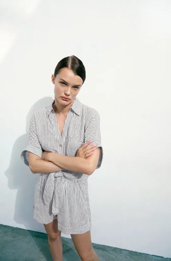 Pensabas que Zara no te traería bermudas, te enamoraras de esta bermuda Paperbag rayas. Confeccionada con una excelente mezcla de lino y viscosa, de tiro alto, con bolsillos y para mayor comodidad su cintura es elástica. Realmente esta bermuda es bien cómoda, pero por su confección la podrás utilizar en tus diversas actividades. Puedes tildarla de jovial, sin descartar su elegancia, permitirá lucir tus bellas piernas. Tiendas Zara te las trae en colores blanco y negro, en tallas desde XS hasta la XL y no podrás creer su precio, solo 19.95 euros.