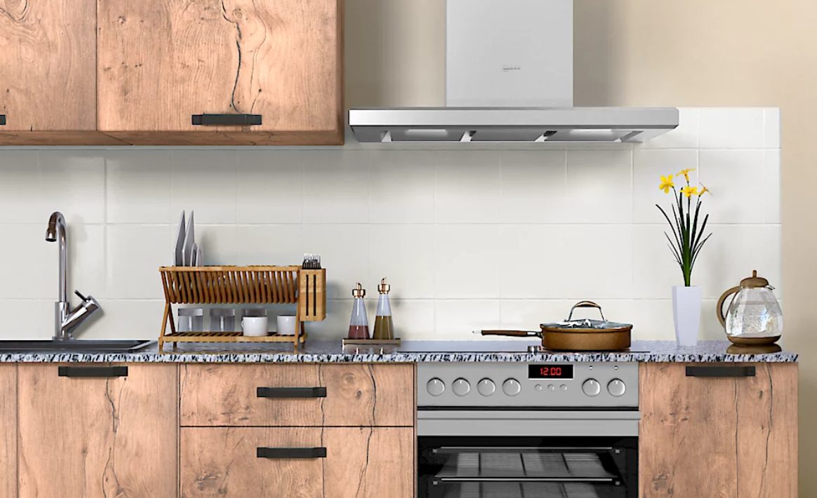 La cocina Santiago de Leroy Merlin debe ser otra opción a tener en cuenta para los amantes de la madera. Recrea nudos y vetas del roble y destaca por su acabado mate y sus múltiples matices de color.