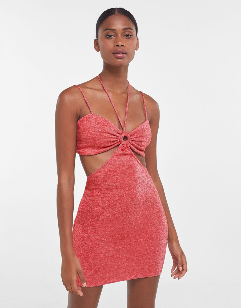 Este hermoso vestido de color rojo, es otro de los preferidos de las mujeres ya que, permite lucir el cuerpo de una manera espectacular. Cuenta con un hermoso diseño y estilo que lo hace uno de los más vendidos por la web. Tiene hermosos escotes para mostrar una cintura sexi y sensual, además un condón para sujetar en la parte del cuello. Son fabricados con un 73% de poliéster, 12% de fibra metalizada, 9% poliamida y un 6% de elastano. Mientras, que en la parte del forro está elaborado en 95% de poliéster y 5% de elastano. Entonces, es un modelo que no pueden dejar de comprar por Bershka a un precio accesible de 29,99 €.