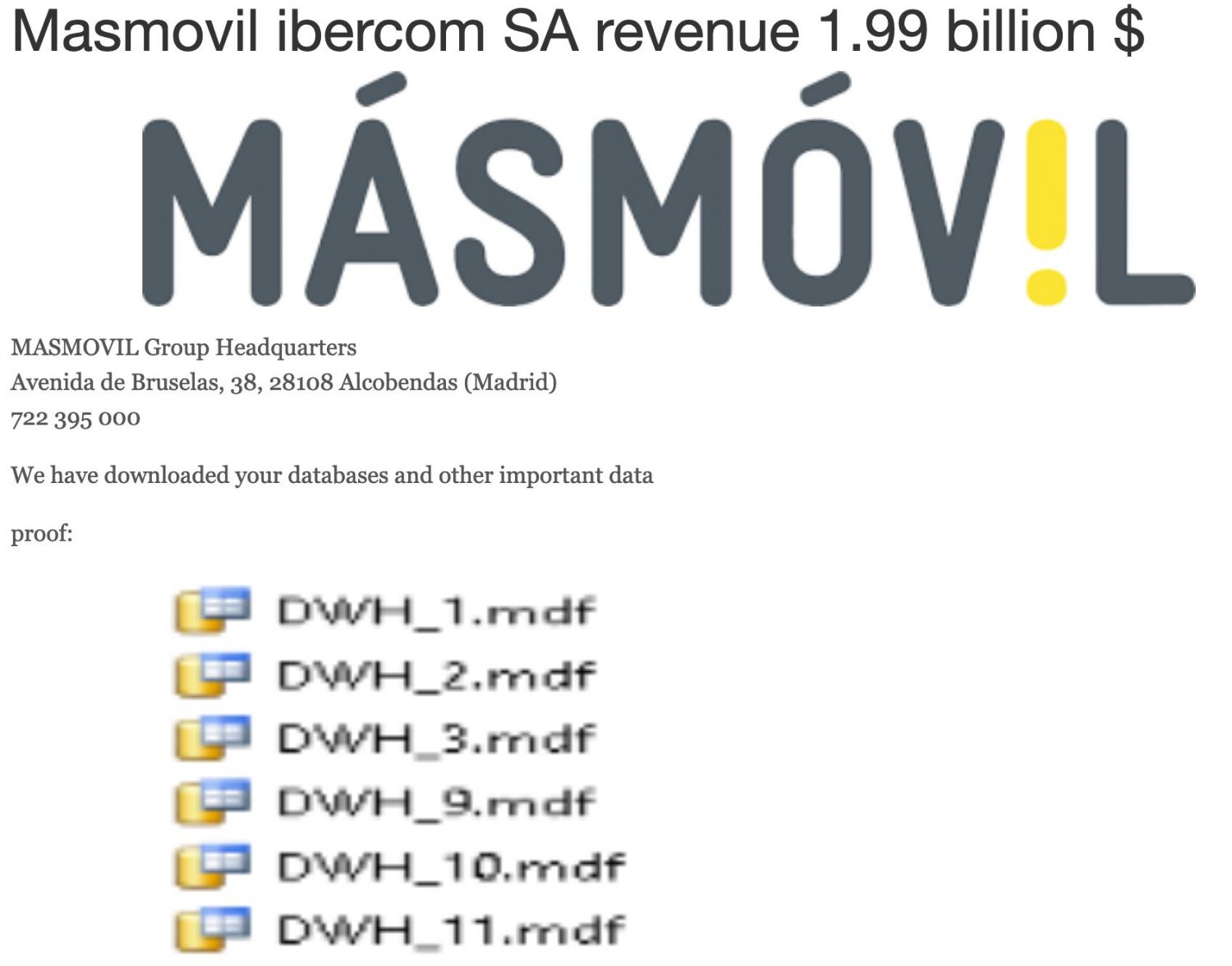En el caso del Grupo Más Móvil Ibercom S.A. de momento el tema es bien diferente. Primero, porque la cantidad de dinero que exigen a la compañía es absolutamente delirante, una cifra que nadie asume que la compañía vaya a pagar (y menos si no tienen constancia de que les hayan ciberatacado); y segundo porque nadie se ha puesto en contacto aún con Más Móvil para comunicarles las condiciones del presunto rescate. De momento, es solo el alarde vía Internet en la darkweb el único que informa presuntamente de este «brutal» ciberataque.