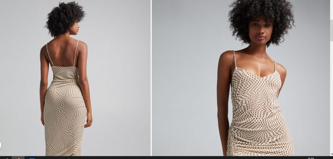 Para mucho estamos ante el vestido del verano, de los que la firma de Inditex más ha vendido. El vestido midi fruncido print es rompedor. Como puedes ver a la modelo le queda ajustado y le hace marcar el tipazo que tiene. Además, para rematar esa apertura en un lado para estilizar y darle más sentido al vestido. Si estás pensando en su precio, 17,99 euros.