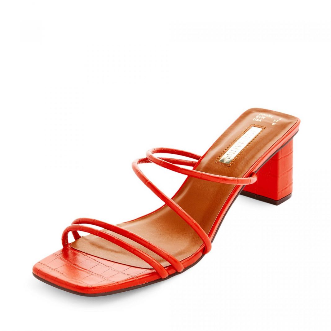 Estas sandalias de tacón son uno de los últimos diseños que Primark ha incorporado a su colección. Se enmarcan en las tendencias de la temporada ya que apuestan por la comodidad y el estilo en un mismo diseño. Su tacón ancho te permite andar con mayor comodidad a la vez que estiliza tu look. Están confeccionadas con cuatro tiras tubulares que sujetan el pie atravesando el empeine. En su color rojizo se aprecia un sutil grabado que simula la piel de cocodrilo. Su precio es de tan solo 12 € y ya están a la venta en todas las tiendas de Primark.