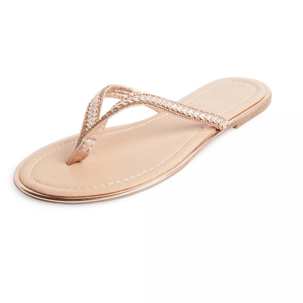 El regreso de las chanclas llega pisando fuerte con diseños renovados. Dispuestas a mejorar cualquier look sin renunciar a la comodidad llegan estas sandalias planas a Primark. En tonos beige claros con destellos dorados incorporan a su colección de sandalias este modelo con una tira entre los dedos. Estás repletas de adornos de strass pero al ser tan finas dan lugar a un diseño elegante que se aleja de lo recargado. Están disponibles en cualquier tienda de Primark y por tan solo 6 € pueden formar parte de tus looks este verano.