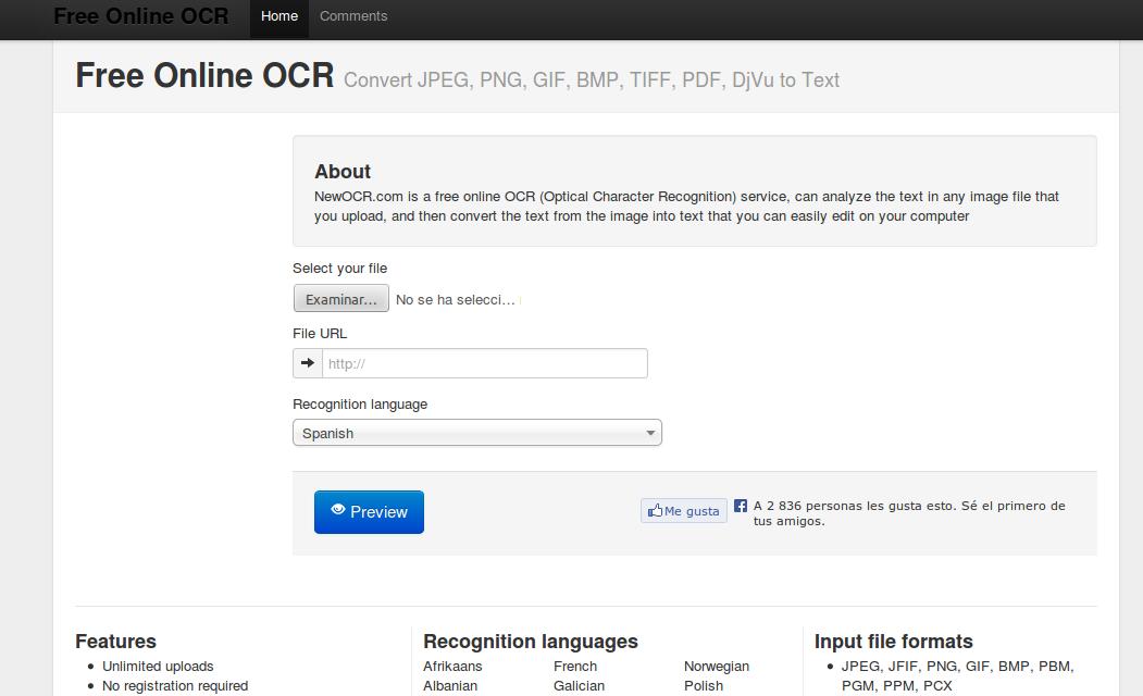 También es cierto, que la alternativa que tenemos ahora mismo es realizar este tipo de funciones en el escritorio es de manera on line. Uno de los más populares es newocr.com. Lo mejor es que es gratis y no te tienes que registrar, solo te va dando pasos intermedios para saber cómo tener que subir una fotografía a la web y procesarla.