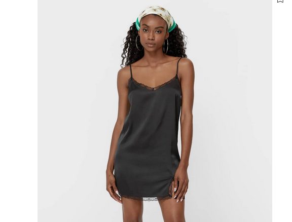 ¿Quieres mostrarte este verano más sexy que nunca? Y lo más importante sin hacer un roto a tu cuenta corriente. Pues nuestra apuesta es por este vestido corto satinado de escote recto y tirante fino con el que vas a llamar la atención de muchos y muchas. Como puedes ver tiene abertura en bajo y un detalle de encaje en escote y bajo, que le da ese toque de vestido de lencería. Solo lo tienes en color negro, pero en todas las tallas. Por 12,99 euros lo puedes acompañar con unas sandalias de tirantes.