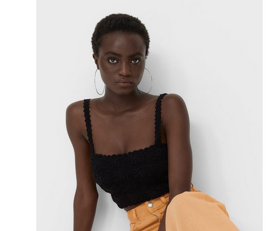 Los tops de tirantes son básicos que no pueden faltar nunca en los armarios de verano. Por eso, si ahora tienes la oportunidad de comprarlos por 12,99 euros es el momento para hacerte con unos cuantos. Por ejemplo, este top de escote recto y tirantes tejido a crochet con detalle de espalda en nido de abeja que es ideal para lucir en las tardes de verano en cualquier sarao al que estés invitada. Está disponible en Stradivarius en varios colores: negro, crudo y blanco. Nuestra recomendación es que te hagas con uno de cada, porque son ideales y dan mucho juego en verano.