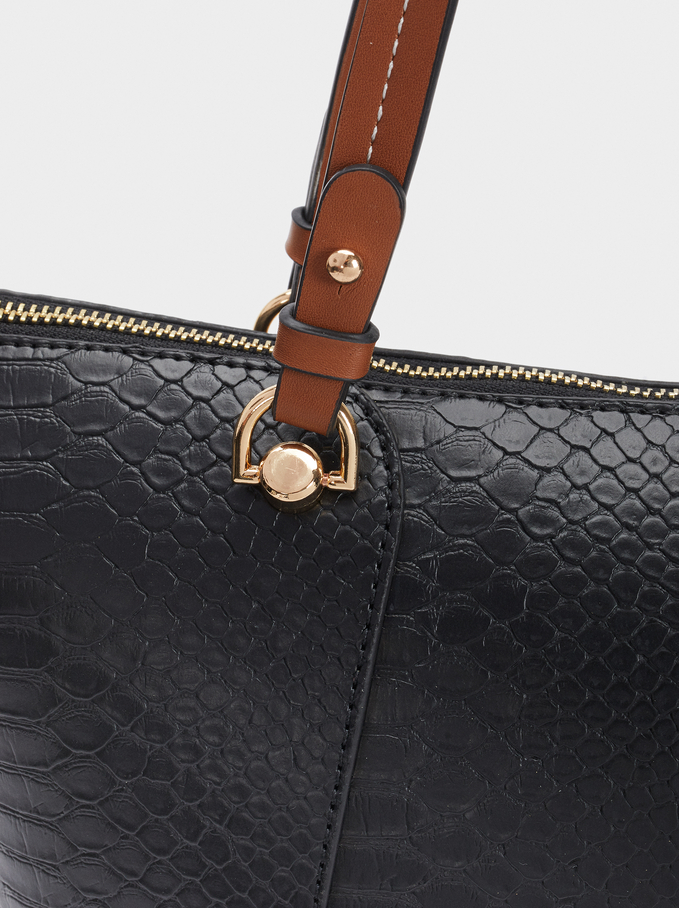 Uno de los detalles que más nos gustan es su diseño con grabado animal en tono oscuro que se complementa a la perfección con dos asas de buen tamaño en un bonito tono marrón piel. Con bandolera extraíble, nos lo podemos llevar a casa por 15,99 euros. Está rebajado 10 euros, pues antes costaba 25,99.