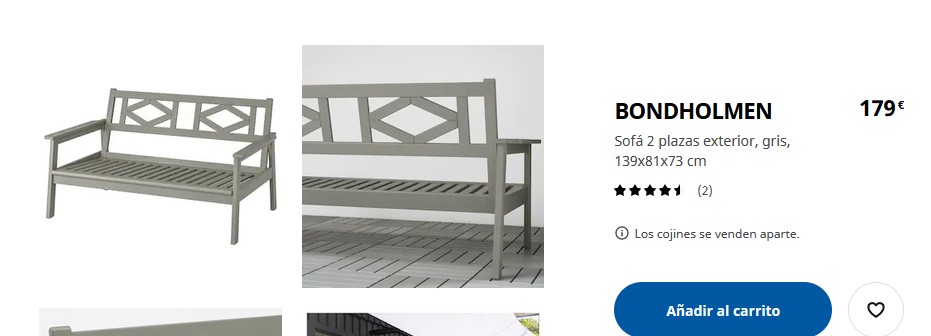 Es un hermoso sofá que tiene un estilo tradicional perfecto para disfrutar grandes momentos inolvidables al aire libre. Tiene la capacidad para 3 personas y, son fabricados en madera de eucalipto duradera, además de gran calidad. Cuenta con unos hermosos detalles artesanales, por lo que es cómodo en todo momento. Fue diseñado con unas proporciones muy generosas, de tal manera de que el asiento como los reposabrazos generen un buen apoyo. Inclusive, tiene un hermoso borde de respaldo que mantiene los cojines en su sitio, entonces, anímate a comprar este sofá. Solo deben entrar a la página web de Ikea por un simple precio de 179 €.