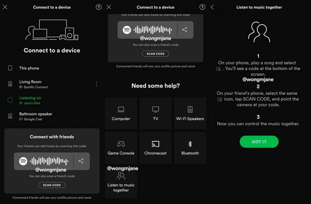 Una de las últimas funciones que ha lanzado Spotify y se encuentra en constante actualización es la llamada de grupo desde la aplicación móvil. Con esta novedad puedes estar conectado a otras personas escuchando lo mismo y controlando la reproducción de canciones para compartir momentos juntos a distancia. Una vez que entres para conectarte a otro dispositivo y pulses Empezar una sesión de grupo se generará un código que podrás facilitar a las personas que tú quieras que se unan. También puedes seguir los perfiles de tus amigos para ver lo que escuchan en cada momento y añadir sus listas a tus favoritos.