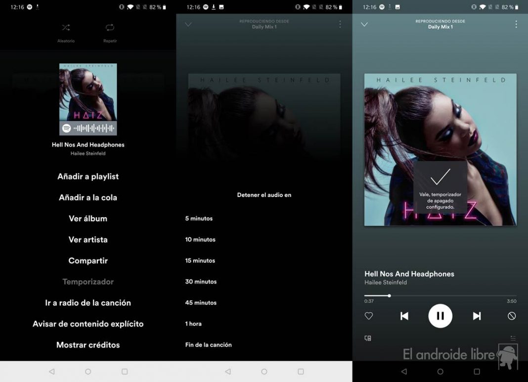 Si quieres que la música de Spotify pare de reproducirse automáticamente en un momento concreto puedes programar un temporizador. Es una función bastante útil que te permite desconectar fisicamente del dispositivo mientras escuchas podcast o canciones. Si por ejemplo la usas para dormir bastará con establecer antes el tiempo que quieras de reproducción hasta que se apague. Además, si tienes un sistema operativo de Android, podrás establecer la canción con la que quieres despertarte gracias a la aplicación del Reloj de Google. Al crear una alarma te permite escoger Spotify como medio externo de reproducción.
