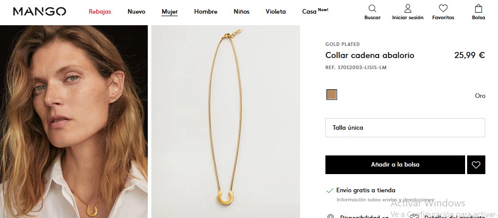Es un collar cadena abalorio, que está bañada en oro 24k y está fabricada en 100% latón, además cuenta con un diseño largo. Además, es completamente colgante de abalorios y cierre de cadena, mosquetón por lo que es considerada una de las prendas más vendidas. Debido a que es completamente elegante y perfecta de usar en todo momento, sobre todo en esos eventos exclusivos. Así que, la pueden comprar por Mango a un precio accesible de 25,99 €.