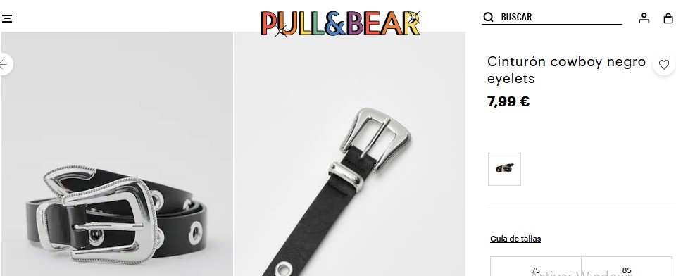 Es otro de los cinturones preferidos de la plataforma, dado que cuenta con un efecto piel de color negro. Además, tiene una hebilla estilo cowboy en acabado plateado y detalles de eyelets en contractes. Por lo que, es perfecto usar con unos buenos jeans y marcar tendencia en esta temporada de verano. Además, son fabricadas en 100% poliuretano, por lo que no se debe lavar, no usar lejía ni blanqueador. Inclusive, no planchar, no limpieza en seco y menos debemos usar secadora. La puedes comprar este hermoso cinturón entrando a la plataforma web de Pull&Bear a un precio de 7,99 €.