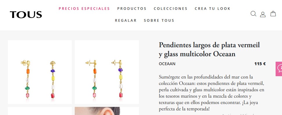 Son unos pendientes largos elaborados de plata vermeil, con perlas cultivadas y glass multicolor que está completamente inspirada en los tesoros marinos. Por lo que, se ha convertido en una de las joyas más vendidas por la plataforma de Tous. Se caracteriza por estar compuesta de una mezcla de colores y texturas, que en ellas se puede encontrar, además es una de las joyas perfectas de esta temporada. Estos hermosos pendientes, se han caracterizado por ser perfectos para usar en cualquier ocasión del día. Puedes comprarlo solo entrando a la plataforma de Tous por un precio accesible de 115 €.
