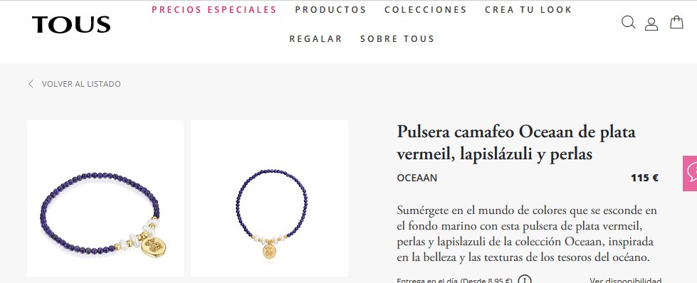 Esta hermosa pulsera de plata de primera ley, que están unidas por tres anillas. Es un collar que está cultivado de agua dulce de manera barroca de 9mm, la pulsera con un oso de 10mm, cuenta una concha y anémona de 8mm. Por lo que, se ha convertido en unos de las joyas más vendidas de Tous, siendo una de los collares hermosos de la plataforma. Son fabricado con plata de 1 era ley 925; entonces entra en la plataforma web de Tous a comprarla por un precio de 115 €.