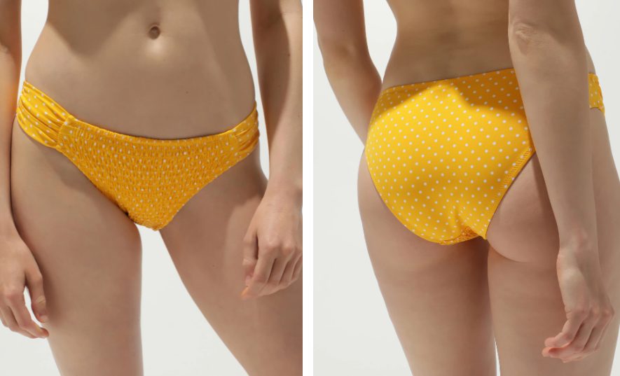 La siguiente prenda de baño de El Corte Inglés que hemos seleccionado es también una braguita de bikini. En este caso es un diseño mucho más sencillo, aunque también mucho más fácil a la hora de combinar. Se trata de un modelo en color amarillo y con estampado de lunares.