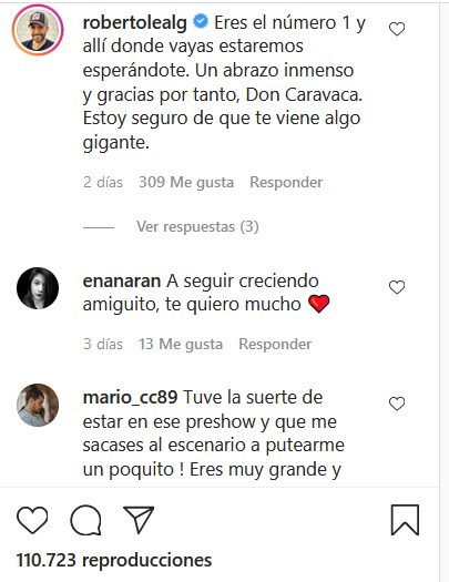Y después de esta despedida, muchos amigos han querido mandarle mensajes de apoyo. El presentador de pasapalabra, Roberto Leal, enemigo de David Broncano, le dijo «eres el número 1 y allí donde vayas estaremos esperándote), Ernesto Sevilla, Marita Alonso («lo único que me gustaba de la resistencia eras tú»), Pepe Colubi, Arkano, Travis Birds, Keuman, Ingrid García-Johnsson, una de las fijas en el programa que ha dicho: «tu talento no tiene techo compañero». Una pena que haya salido que Caravaca haya salido por la puerta de atrás. De momento La Resistencia ha recogido cable y no ha dicho nada.