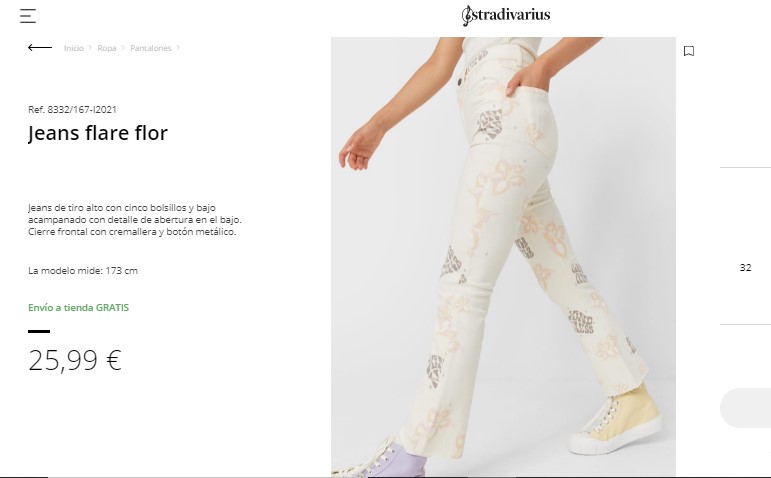 Es un jean perfecto para lucir como unas adolescentes sexis, ya que este cuenta con unos tiros alto con bolsillos. Además, en la parte de abajo está completamente acampanado con unos detalles de abertura en el bajo. Inclusive, cuenta con un cierre frontal con la cremallera y botón metálico para darle un toque más increíble. Cuenta con unos hermosos estampados para darle un toque perfecto y juvenil al jean, por lo que lo convierte uno de los más vendidos. Así que, para comprarlo solo deben entrar a Stradivarius por un precio accesible de 25,99 €.