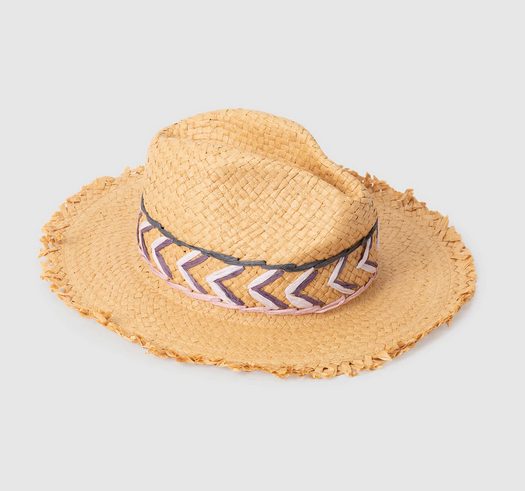 Si te gusta completar tus looks de playa con un favorecedor sombrero, en El Corte Inglés podrás encontrar una gran colección, a destacar la de la marca Jo & Mr. Joe, con propuestas ideales para este verano. Uno de los que más éxito están teniendo esta temporada es este modelo de papel, en tono natural, con el ala deshilachada y divertidos detalles de colores.