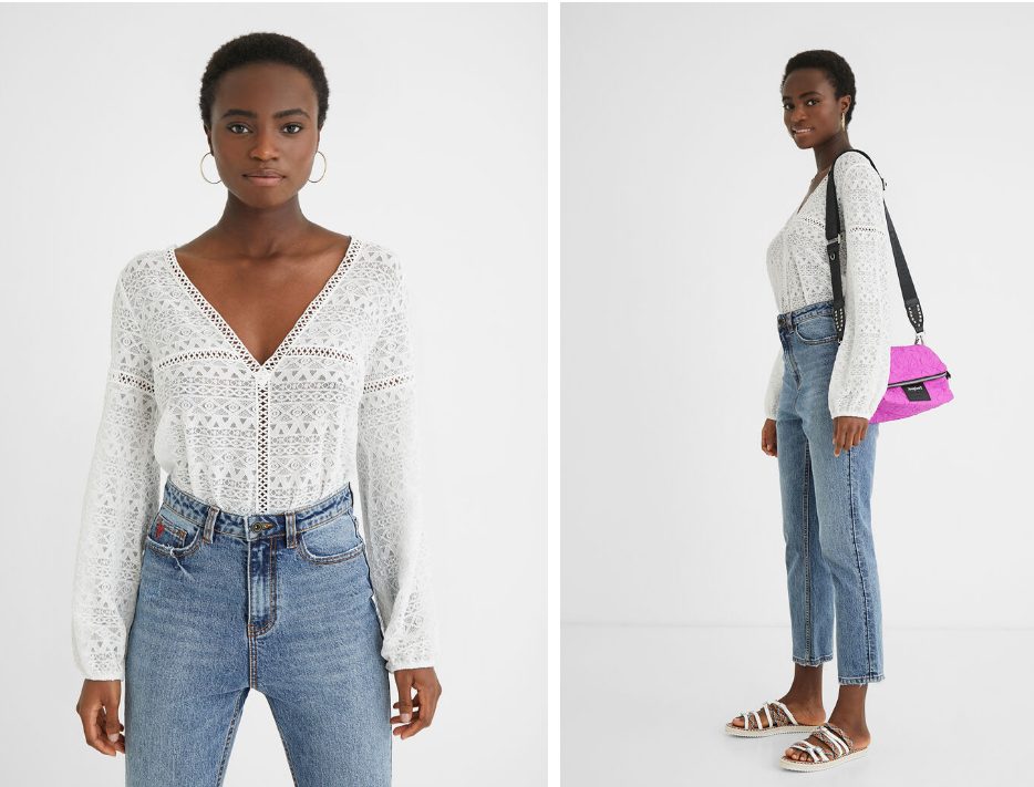 Y terminamos el repaso por lo más nuevo de Desigual con un toque de sensualidad y elegancia. Algo que se unen en este cómodo y estilizador body slim con manga larga abullonada y cuello de pico que combina tejido de encaje con cenefas de crochet. La verdad es que es una prenda muy elegante y que dejará con la boca abierta a amigos y enemigos de tus looks. Además, dentro de la variedad de Desigual es de lo mejor en precios, porque cuesta 49.95 euros.