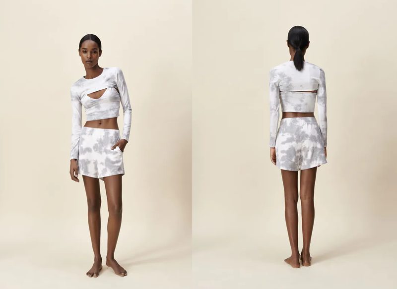 Son unos shorts de tiro alto con cintura elástica y bolsillos laterales. Debido al proceso de tintado, el estampado de cada prenda es único y puede presentar diferencias respecto al que se muestra en la foto. Forma parte de la colección de la marca Join Life: Care for fiber, al estar elaborados con al menos 15% de algodón reciclado. Están confeccionados en 100% algodón.