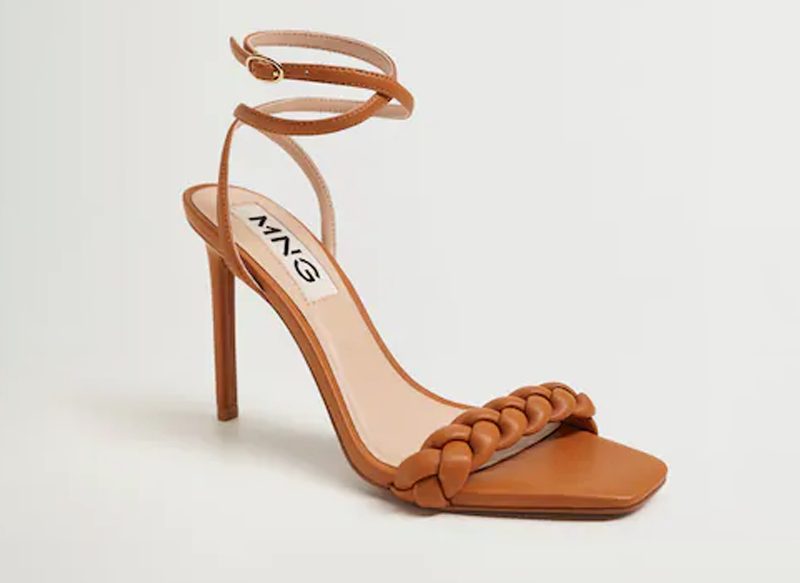 Una alternativa para poder lucir en tus ocasiones más festivas y en cualquier evento o celebración es esta sandalia trenzada tacón de Mango. En este caso está disponible en acabado cuero, mostaza y negro, a un precio de venta de 29,99 euros (PVP original: 39,99 euros).