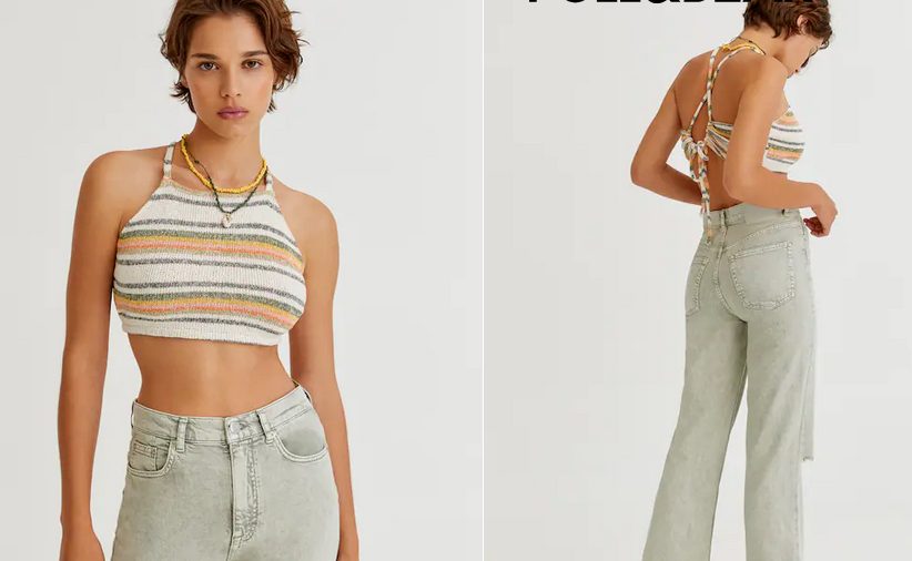 Este verano vuelven a estar de moda los top, ahora bien, este que te presentamos ahora tiene su elegancia y su atractivo. Tenemos un top de punto con estampado de rayas, tirantes finos, escote recto y silueta cropped. Además es una prenda ecológica que está fabricada con una fibra que se obtiene a partir del reciclaje de plástico PET, como el de las botellas de agua. Lo que te dejará sin palabras es su precio: 3,99 euros. Sí, no es un error, cuesta eso.