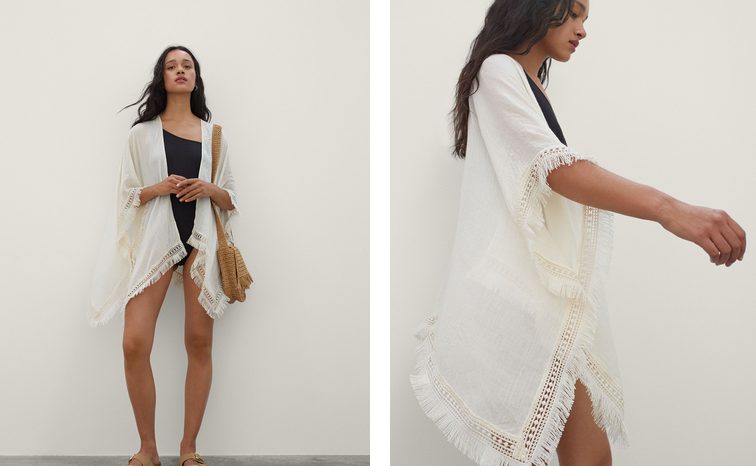 En algunas prendas la marca Parfois lo rompe. Y por ejemplo lo ha hecho con este kimono abierto que es precioso y que creemos que no lo encuentres en ninguna tienda con estas características. Se trata de un kimono abierto que es elegante y práctico. Centrarás todas las miradas en la playa, pero también es muy práctico para llevarlo encima del bikini y cortar el viento. Su composición es de 15%Nylon, 60%Poliester, y 25%Viscosa.Y el precio, pues otro punto a su favor: 19.99 euros.