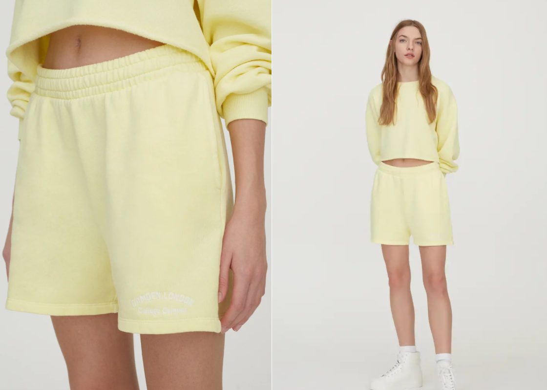 Pero no solo tops podemos encontrar dentro de la sección de rebajas de Pull&Bear. Una de las prendas que nos encanta viene en forma de bermudas. En concreto, estas de un bonito tono amarillo, que no ha tardado en convertirse en el color de la temporada.