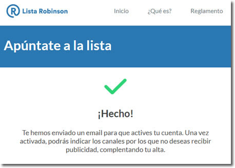 Cumplir con la Lista Robinson. También se aumentan las garantías de que las compañías y operadores respeten la Lista Robinson y que los clientes incluidos en este sistema no sean contactados. La Lista Robinson es un servicio gratuito de exclusión publicitaria a la que puede acceder cualquier consumidor a través de su página web.