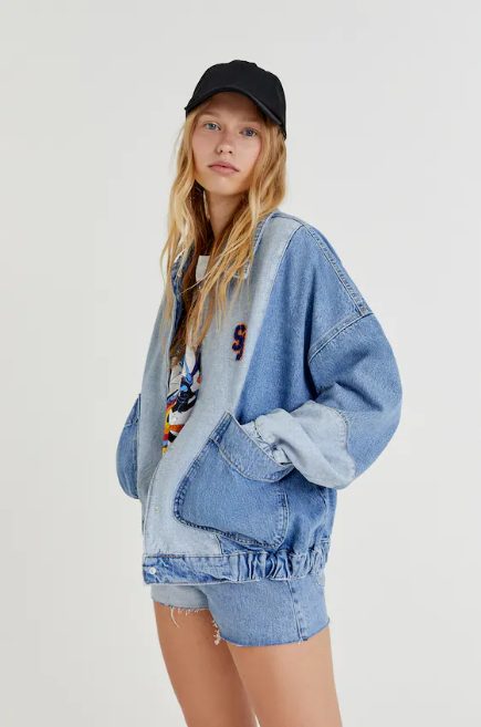 Esta deportiva vaquera, para lucirla donde quieras, con un acabado de primera confeccionada totalmente en algodón, realzará tu porte y demostraras tu estilo. Viene en un delicado color azul medio y en tallas desde la XS a la L. Su precio es de 45.99 euros.