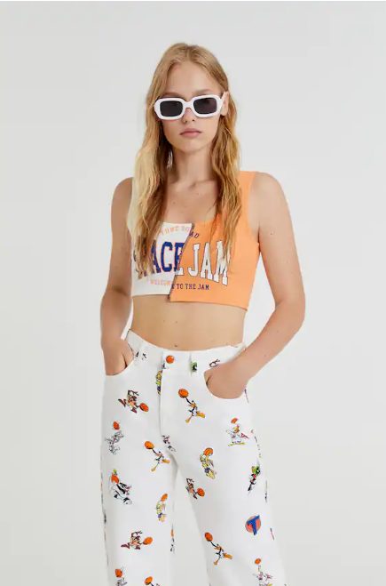 Imposible que falte en una colección de última moda, traída por las tiendas Pull&Bear, un delicado y confortable top y de la colección Space Jam, trajeron el top Space Jam color block.