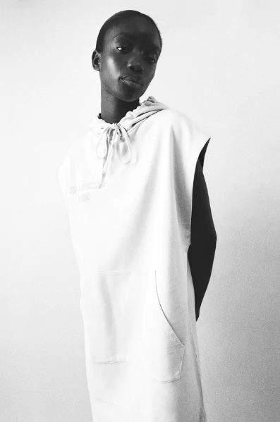 Este delicado vestido felpa lavado, es una pieza única que solo traen las tiendas Zara. Con capucha que se ajusta por cordones, con mangas tipo sisa y bolsillo estilo canguro en la parte delantera, con detalle de texto en el pecho.