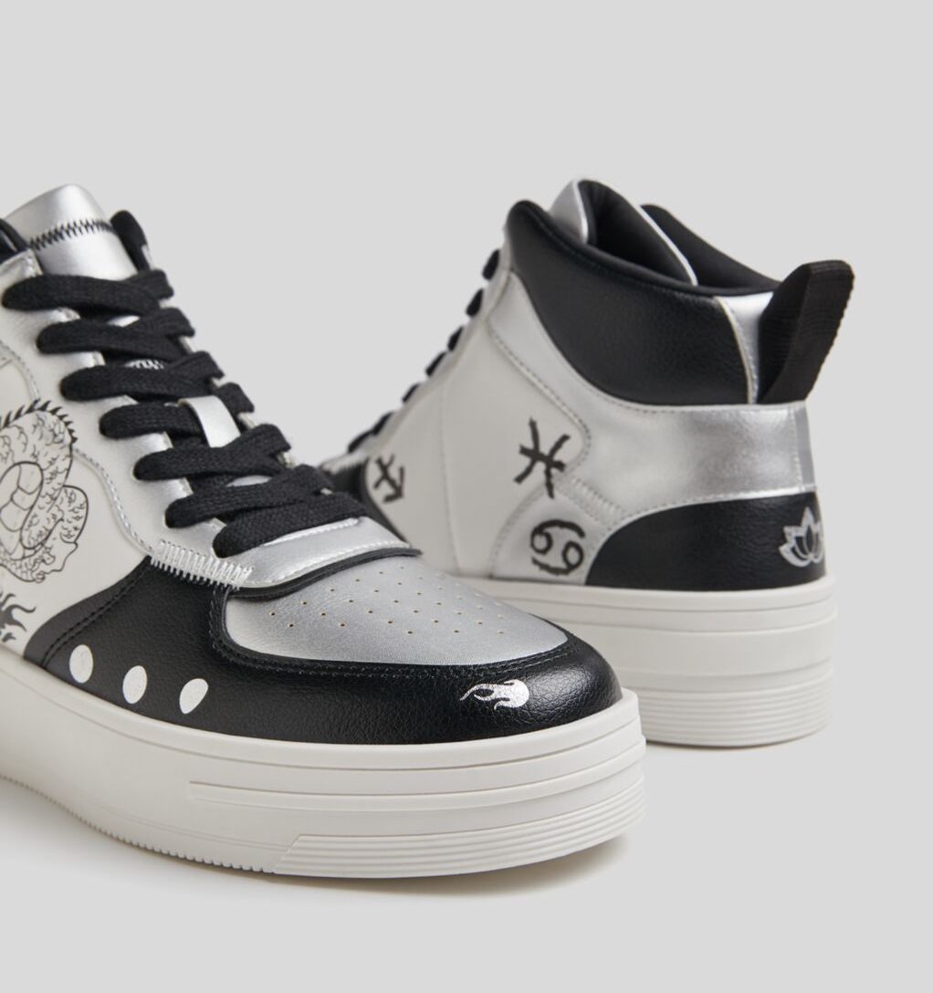 En colores blanco, negro y plateado, lo que más nos gusta es que estas zapatillas abotinadas vienen acompañadas por unos cuantos tatuajes para que podamos personalizarlas a nuestro antojo. Su precio es de 39,99 euros y las podemos estrenar cuando deseemos.