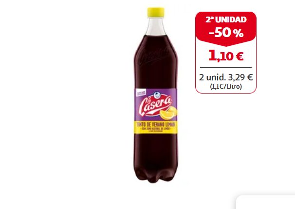 No hay nada mejor para el verano que combatirlo con un buen tinto de verano. Sin duda, la bebida por antonomasia. Engorda mucho menos que una cerveza y además aportar más nutrientes. Y por supuesto, nos quita la sed de un plumazo. En Alcampo puedes encontrar este tinto de verano con zumo natural de limón LA CASERA en botella de 1,5 l por solo 1,10 euros. Con la compra de 2 unidades se aplicará un descuento del 50% en la segunda unidad.