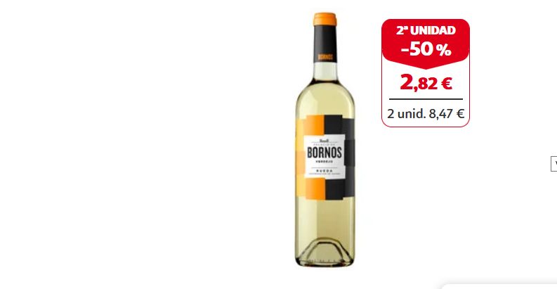 Si eres más de vino blanco, también te traemos una oferta de Alcampo a la mitad de precio que seguro que no puedes rechazar. Se trata de un vino blanco verdejo con denominación de origen Rueda Palacio de Bornos que llega en botella de 75 cl. Sin duda, una bebida ideal para los vermuts veraniegos y que es el mejor acompañante para platos donde el pescado es el protagonista. Su precio es de 5.65 euros, pero si te llevas el 2×1 del supermercado, la botella te saldría por 2,82. Chollo.